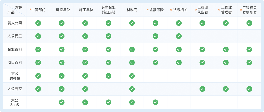 作为工程界的信息聚合市场和应用产品入口,姜太公网的唯一目标,就是做成工程行业都知道、都在用、都说好的标准型一站式互联网云服务平台。