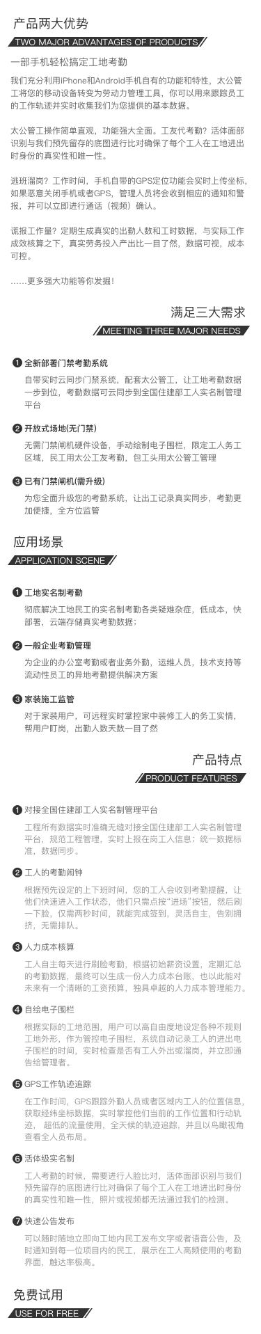 我们充分利用iPhone和Android手机自有的功能和特性,太公管工将您的移动设备转变为劳动力管理工具,你可以用来跟踪员工的工作轨迹并实时收集我们为您提供的基本数据。